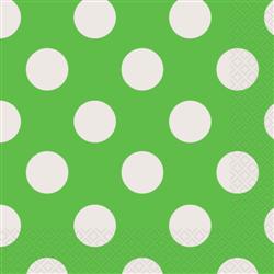 Luncheon Napkin 33cm * 33cm Polka Dot Lime. 16 per packet 2 ply.